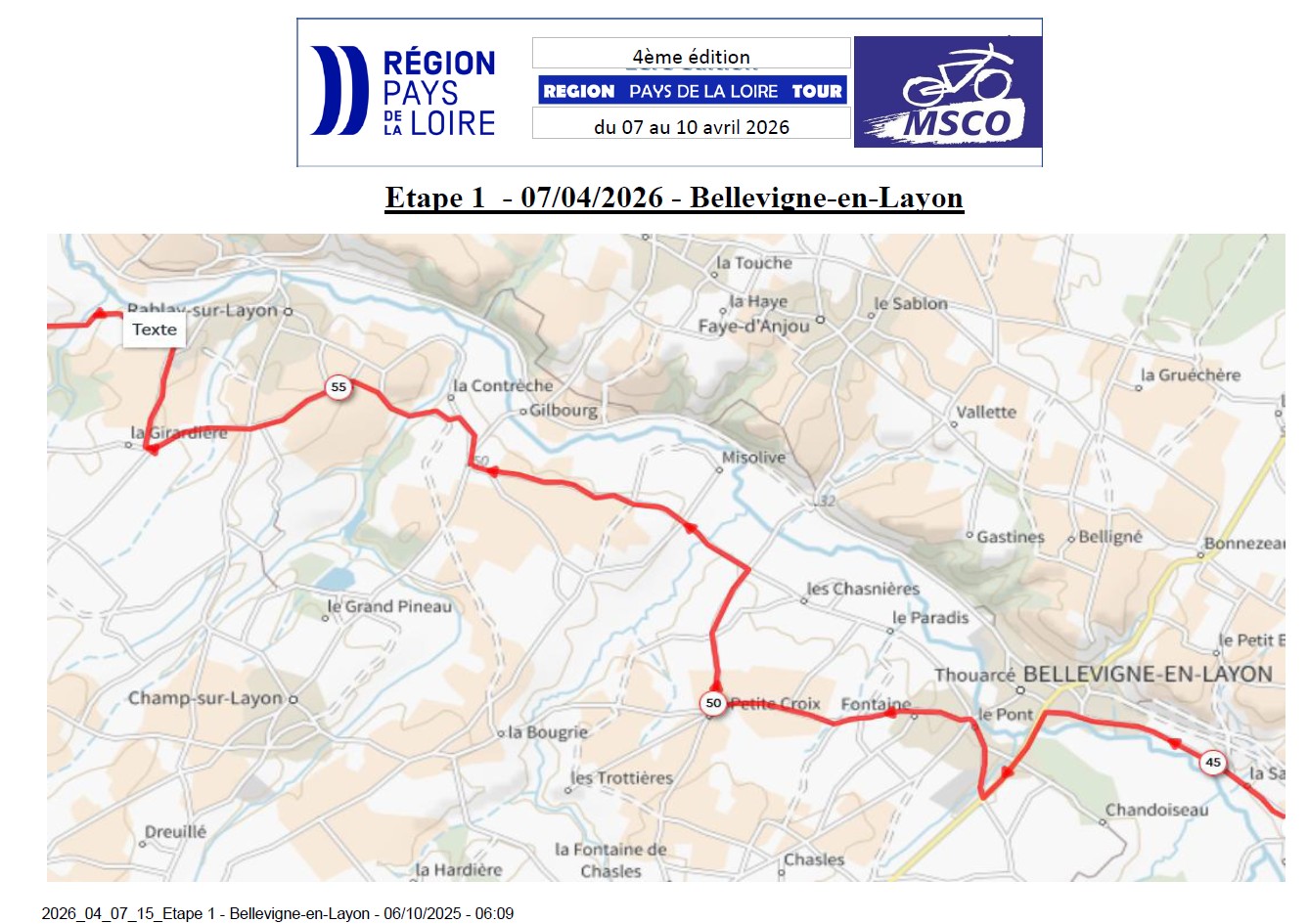 La course cycliste masculine « Pays de la Loire Tour » passera sur la commune le mardi 7 avril prochain, entre 12h45 et 13h30.